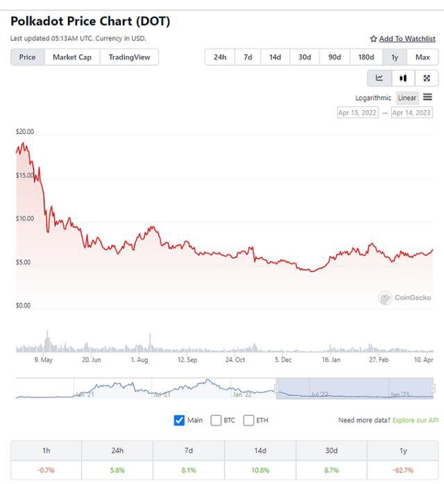Polkadot 的价值在过去一年中下降了 62%,造成这种下降的因素可能有很多。困扰 Polkadot 网络的一个问题是黑客利用代码漏洞,导致数百万美元被盗。这导致了对网络安全性和稳定性的担忧,这可能导致价值下降。此外,平行链的有限可用性和通过拍卖获得它们的高成本可能已经排除了一些较小的用例,限制了在现实世界中采用的潜力。