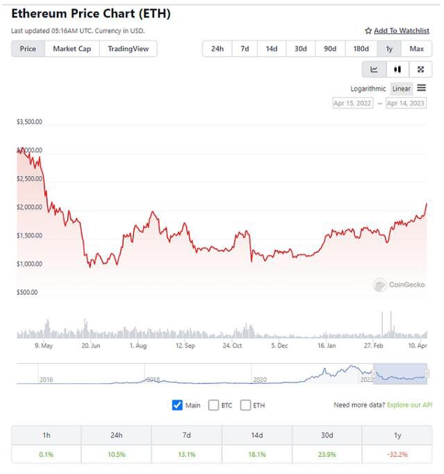 以太坊在其一年期图表中下跌了 32%。与比特币一样,以太坊在现实世界中的采用也有所增加,这对其价值的飙升做出了重大贡献。以太坊网络经历了各种发展,包括去中心化金融 (DeFi) 应用程序和不可替代代币 (NFT) 的增长,这些都显示了网络在现实世界中的潜力,而不仅仅是加密货币交易。随着越来越多的人认识到它在创新应用方面的价值和潜力,现实世界公用事业的增长导致以太坊的采用率增加。以太坊仍然是领先的加密货币,它的持续发展和采用预示着该网络的光明未来。