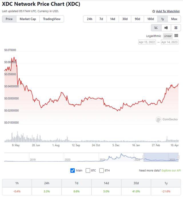 XDC Network Manages 在 1 年图表中下跌了 21%。