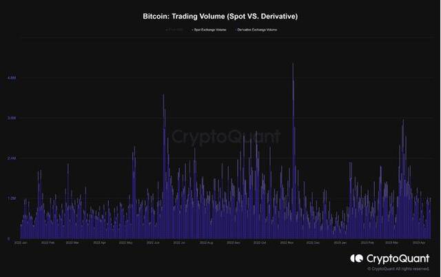 从上图可以清楚地看出,进入现货市场的交易量已经超过了衍生品市场。因此,这表明快速资产交易发生的次数远远多于公开合约。