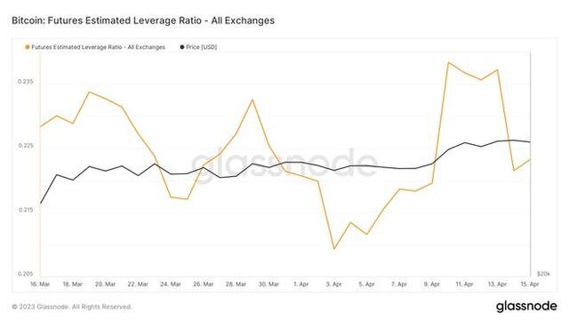 因此,这意味着只有极小的空头轧平迹象,因为交易员没有为更多的上涨而发出买入信号。估计杠杆率 (ELR)再次证实了这一点。该指标是指 OI 与交易所储备的比例。