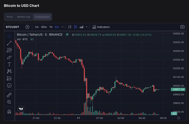 比特币 (BTC) 跌破30000美元:加密货币市场以下跌开始新的一天