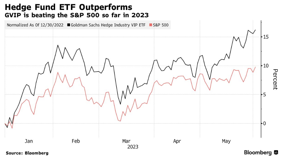 彭博社的数据显示,规模1.27亿美元的高盛对冲行业VIP交易所交易基金(GVIP)在2023年迄今已经上涨了16%以上。该基金通过扫描13F份备案文件,建立了一个受欢迎的对冲基金投资组合。相比之下,标准普尔500指数上涨了近10%。