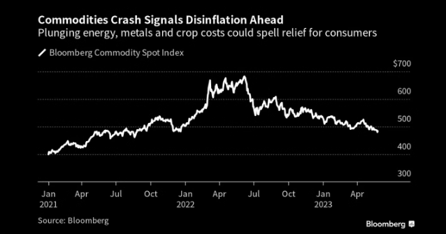 图:大宗商品普遍暴跌预示未来通胀将进一步放缓 来源:Bloomberg