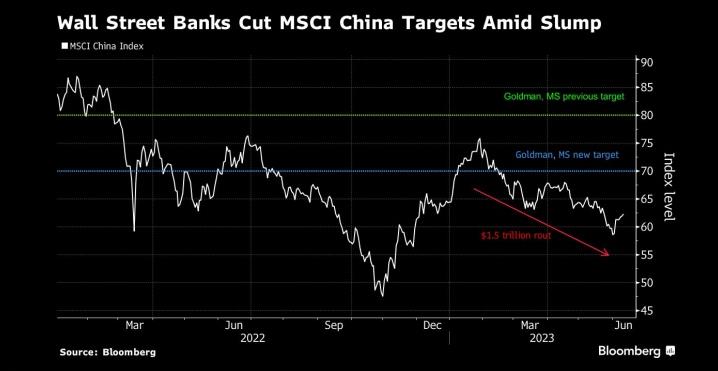 华尔街一些大的银行开始达成不那么乐观的共识,高盛集团、野村控股和摩根士丹利的策略师都将MSCI中国指数的目标指数下调了至少11%。他们的最新预测表明,尽管该指数可能会从目前的水平反弹,但它将难以重返1月份创下的高点,当时疫情刚刚开放的热潮达到了顶峰。
