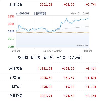 6月15日A股收评:短期做多的积极性提高 股市迎放量大涨