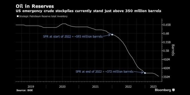 图:美国的SPR目前略高于3.5亿桶 来源:Bloomberg
