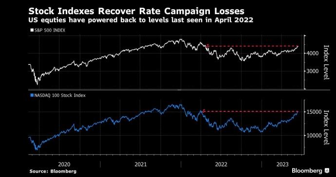 随着美联储自启动这个加息周期以来首次在政策会议上维持利率不变,美国股市也反弹到了这轮这个政策紧缩周期前的水平。