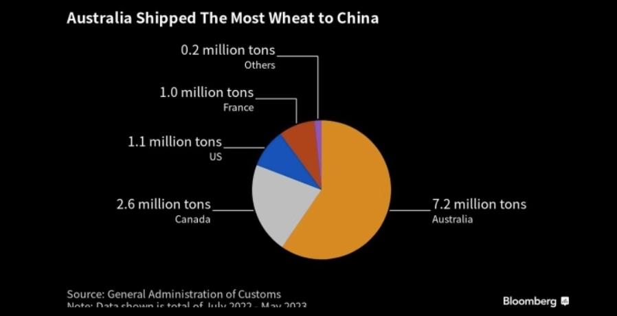 图:澳大利亚成为中国最大的小麦供应国 来源:Bloomberg
