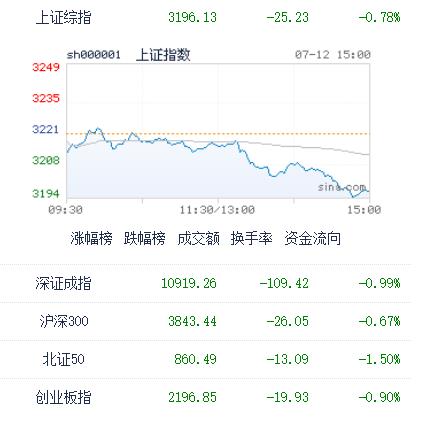 7月12日消息,大盘午后震荡下挫,深成指、创业板指跌近1%,沪指再度失守3200点。板块方面,AI概念股陷入调整,算力方向领跌,浪潮信息、中国长城、鸿博股份跌停。总体来看,个股呈普跌态势,个股方面,下跌股票数量超过4200只,两市成交有所放量,今日达到9119亿元,北向资金净买入4.95亿元。