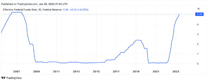 美联储2023年6月25日的有效联邦基金利率,来源:Tradingview
