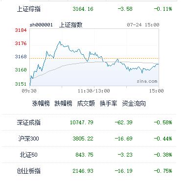 7月24日A股收评:市场情绪较低 市场成交额萎缩不足7000亿
