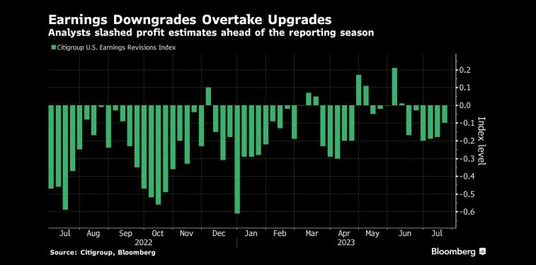 图:美股分析师在财报季前大幅下调了其对美国上市公司的盈利预期 来源:Bloomberg