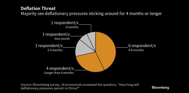 图:多数人认为通缩将持续4个月或更长时间 来源:Bloomberg