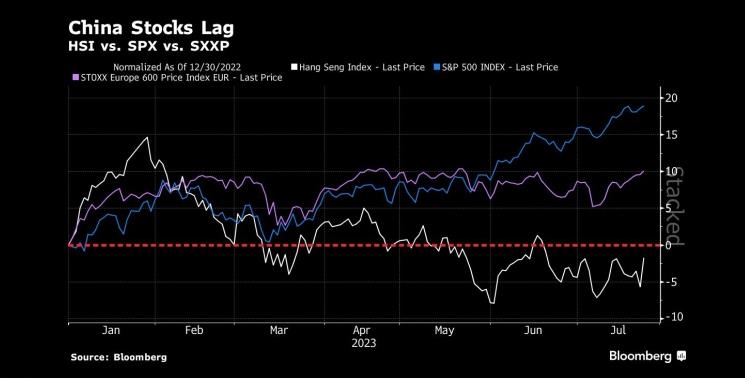 图:昨日行情中A50和恒指下跌,因投资者预计会议提出的框架转为具体措施需要时间 来源:Bloomberg