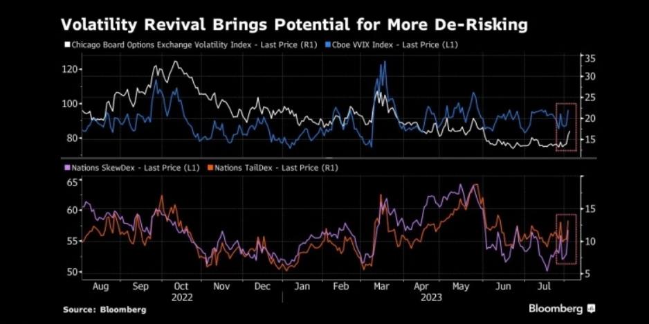图:VIX指数较上周大幅反弹 来源:Bloomberg