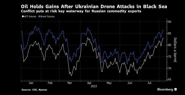 乌克兰一架海上无人机上周周末(8月5日)袭击了一艘俄罗斯商用船只,该油轮为莫斯科驻叙利亚部队提供所需燃料,这一事件导致黑海原油和谷物等大宗商品的贸易面临风险,国际油价也大幅上涨。