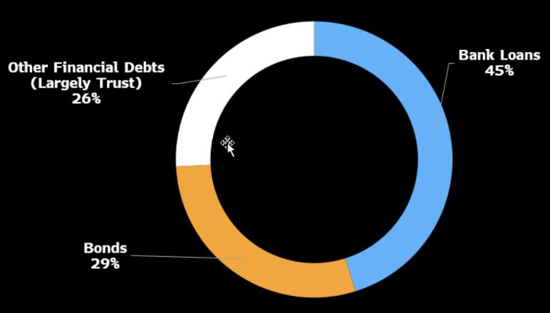 图:信托是中国房地产开发商的重要融资渠道 来源:Bloomberg