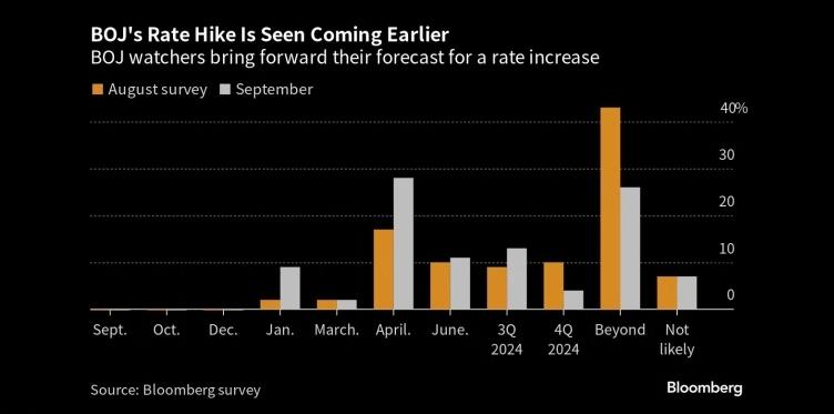 图:观察人士预计,日本央行将提前加息 来源:Bloomberg