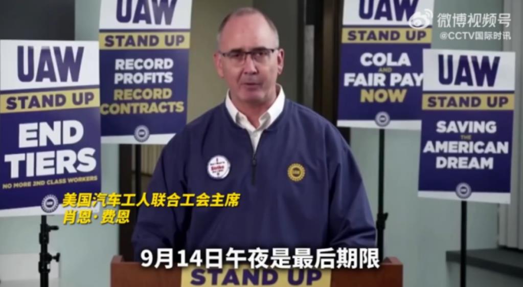 美国汽车工人联合工会主席肖恩·费恩当地时间9月14日深夜在底特律表示,由于与通用汽车、福特及斯泰兰蒂斯这三家汽车制造商的谈判仍然没有结果,该工会准备从当地时间14日午夜12点(北京时间今天中午12点)起发起罢工。