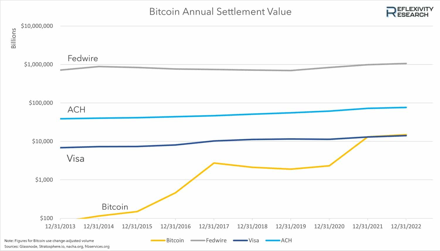 受欢迎的链上分析师兼 Reflexivity Research 联合创始人 Will Clemente 在社交平台 X 上强调了该网络的显著增长轨迹。据透露,比特币的年交易量超过了全球最大支付网络之一的 Visa。