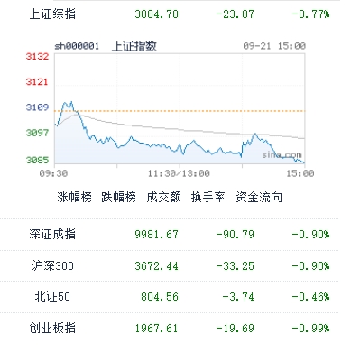 9月21日A股收评:沪深两市双双跌破支撑 成交量低迷下难言行情