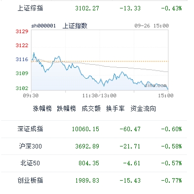 9月26日A股收评:北向资金继续出逃,场内主力资金继续净流出