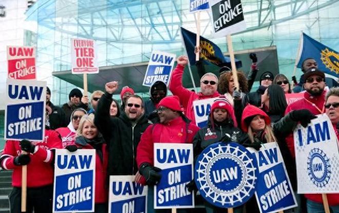 图:全美汽车工人联合会(UAW)罢工现场 来源:Bloomberg