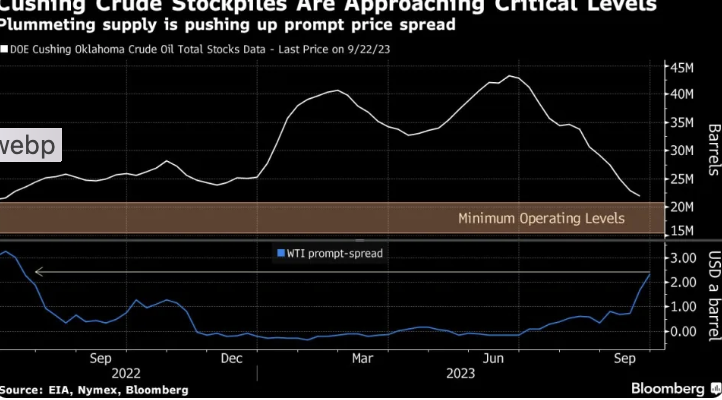 库欣的库存量已经连续七周下降,许多交易商认为库存量已经处于油罐正常运行的最低水平。来自该枢纽的最后一分钟供应正变得越来越昂贵,美国原油对海外买家来说也越来越贵。