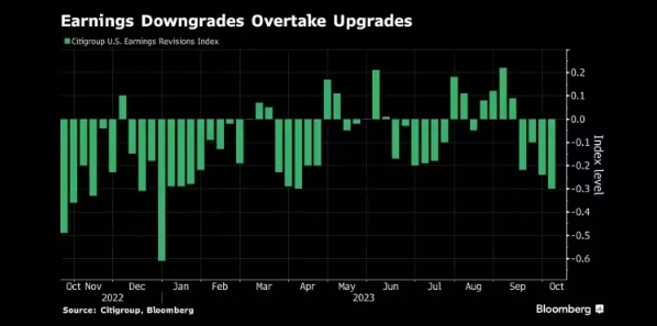 图:标普500指数成分股盈利预测下调超过上调 来源:Bloomberg
