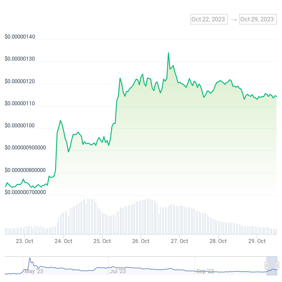 PEPE 7天价格走势图。来源:CoinGecko