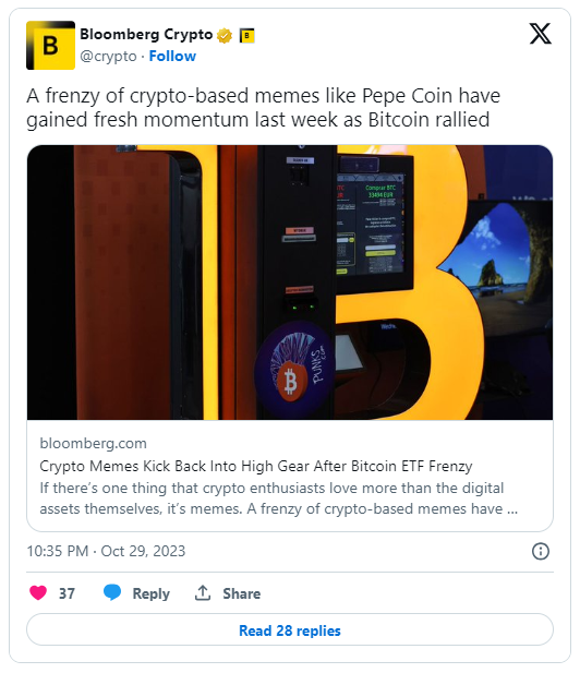 模因代币PEPE引爆加密市场,价格暴涨30%