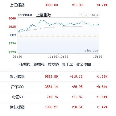 11月3日A股收评:具体看,指数上行主要得益于几大因素