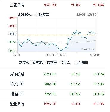 12月1日消息,大盘早间呈弱势震荡走势,午后探底回升,三大指数一度全线翻红,北证50指数继续调整跌超4%。板块方面,游戏、传媒、教育等AI应用方向午后集体爆发,昆仑万维、盛天网络、因赛集团、果麦文化均20cm涨停,游族网络、姚记科技、网达软件、焦点科技、引力传媒、昂立教育等多股封板。中字头个股异动拉升,中成股份、中公高科等涨停。拼多多概念股继续活跃,美登科技、返利科技涨停。算力股走强,高新发展、启明信息、南兴股份涨停。下跌方面,北交所人气股志晟信息复牌大跌超25%,泰鹏智能、威贸电子等多股跌超10%。汽车产业链继续调整,威唐工业、易实精密跌超10%,贵航股份、神通科技、日盈电子接近跌停。总体来看,个股涨多跌少,两市近3000股飘红,成交有所放量,沪深两市今日成交8341亿元,北向资金净卖出49.97亿元。
