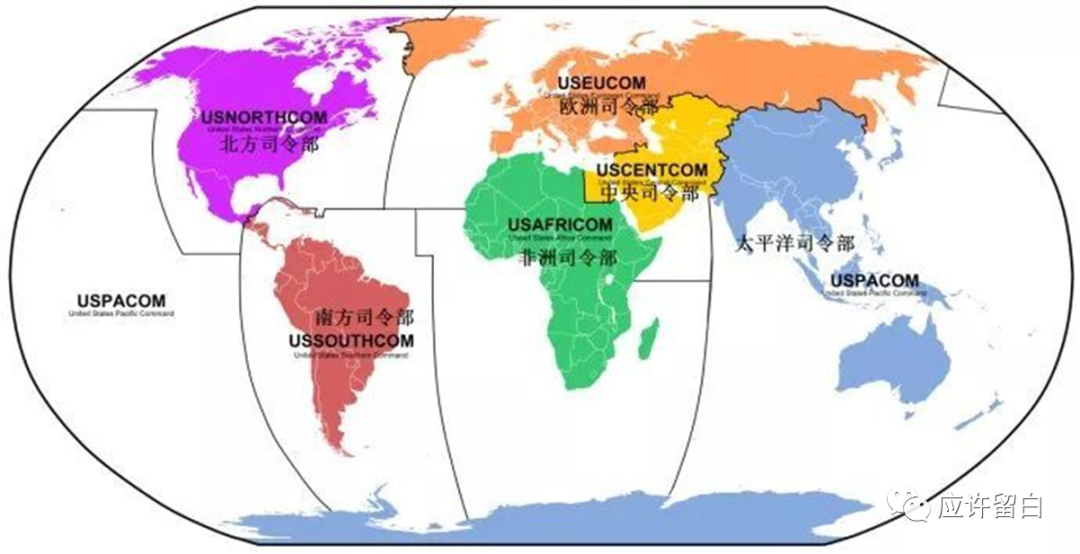 美军将全球划分为六大战区,分别为印度洋-太平洋战区、欧洲战区、南方战区、中央战区、北方战区、非洲战区。美国在中东就有两个军区:中央军区和欧洲军区。