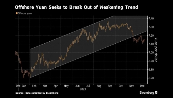 图:人民币寻求突破下降趋势 来源:Bloomberg