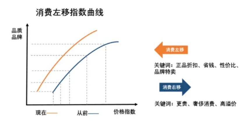 年轻人纷纷涌入折扣店的现象,也被人认为是“消费左移”。在一个“横坐标是价格,纵坐标是品质”坐标上,消费者力求将价格与品质的消费曲线向左边移动——既要求商品价格更低,又要求原先的商品品质。