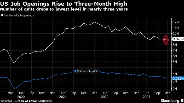 图:美国12月职位空缺数量升至三个月最高 来源:Bloomberg