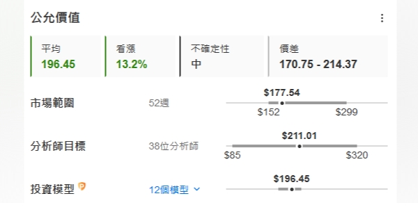 特斯拉分析师目标价均值,以及估值模型测算的公允价值: