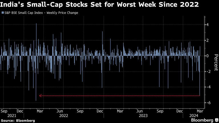“针对小型股的监管行动证明了印度的估值泡沫,”彭博行业研究策略师 Nitin Chanduka表示。“随着全国大选临近以及该地区其他市场芯片股上涨,印度股市的表现可能会继续落后于亚洲其他市场。”