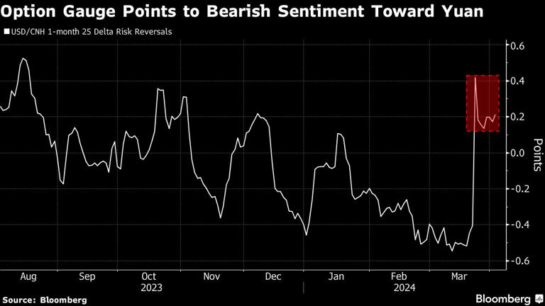 图:期权指标指向人民币看跌情绪 来源:Bloomberg