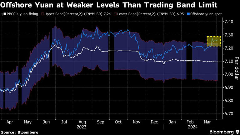 人民币持续承压表明,交易员预计在缺乏大规模刺激措施的情况下,北京将依靠人民币贬值来帮助重振经济成长。 这也反映了更广泛的亚洲趋势,随着美联储发出不急于放松政策的讯号,在美元走强的压力下,亚币下挫。