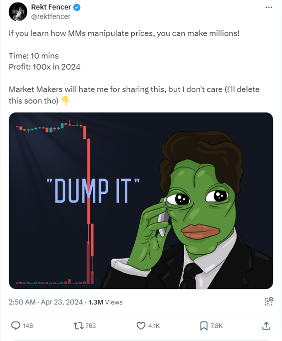 根据 Rekt Fencer 的说法,如果代币在重大新闻发布之前价格大幅上涨,投资者就可以发现与做市商相关的加密货币。