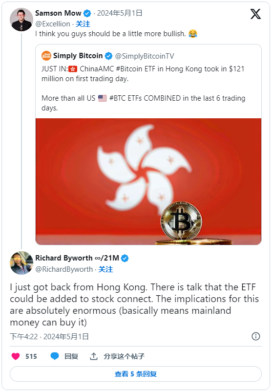 Syzcapital 管理合伙人理查德·拜沃斯(Richard Byworth)在 X 平台的帖子中表示,香港“有传言”将加密产品添加到所谓的“沪港通”设施中,这将允许合格的中国大陆投资者购买在香港上市的合格股票。