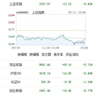 5月21日消息,三大股指全天回调,沪指收跌0.42%,创指收跌0.77%。板块方面,PET铜箔概念全天强势,万顺新材、三孚新科等涨超10%,英联股份、沃格光电涨停封板;消费电子概念集体走强,AI PC方向领涨,英力股份20cm涨停;汽车整车板块午后走高,中通客车盘中涨停;银行板块持续活跃,沪农商行涨幅居前。下跌方面,有色股集体回调,黄金股跌幅居前,飞南资源跌超7%,赤峰黄金跌超6%;民爆概念持续调整,易普力跌超7%;军工板块低位整理,ST瑞科(维权)20cm跌停。总体来看,个股呈普跌态势,近4100只个股下跌。