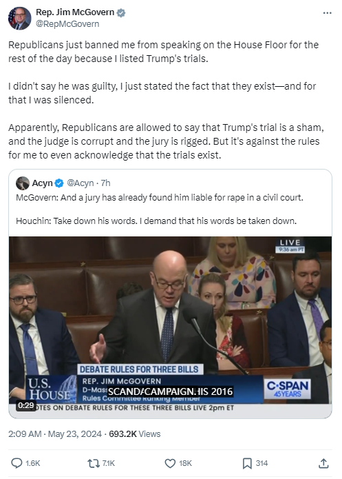 在众议员吉姆·麦戈文(Jim McGovern)对美国前总统特朗普发表评论后,众议院的审议进程开始缓慢,导致共和党人要求删除麦戈文的“言论”。这一机制可在众议院辩论、全体委员会或众议院常设委员会和特别委员会中启动。