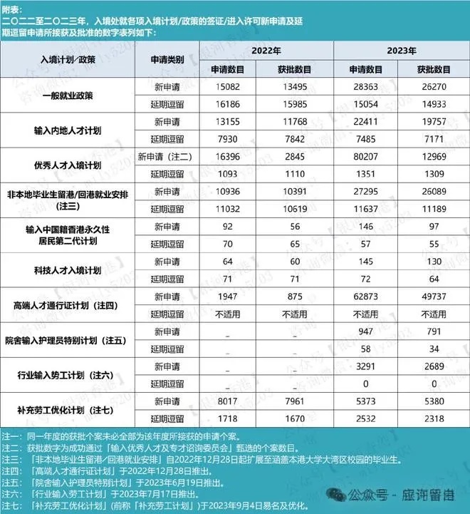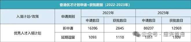 根据入境处透露,2023年香港优才计划开始放宽政策,2年不设配额,申请人数和获批人数都有大幅度增长,其中2023年优才计划新申请达8万宗,是2022年的4.89倍!约1.3万宗批获,是2022年的4.56倍。