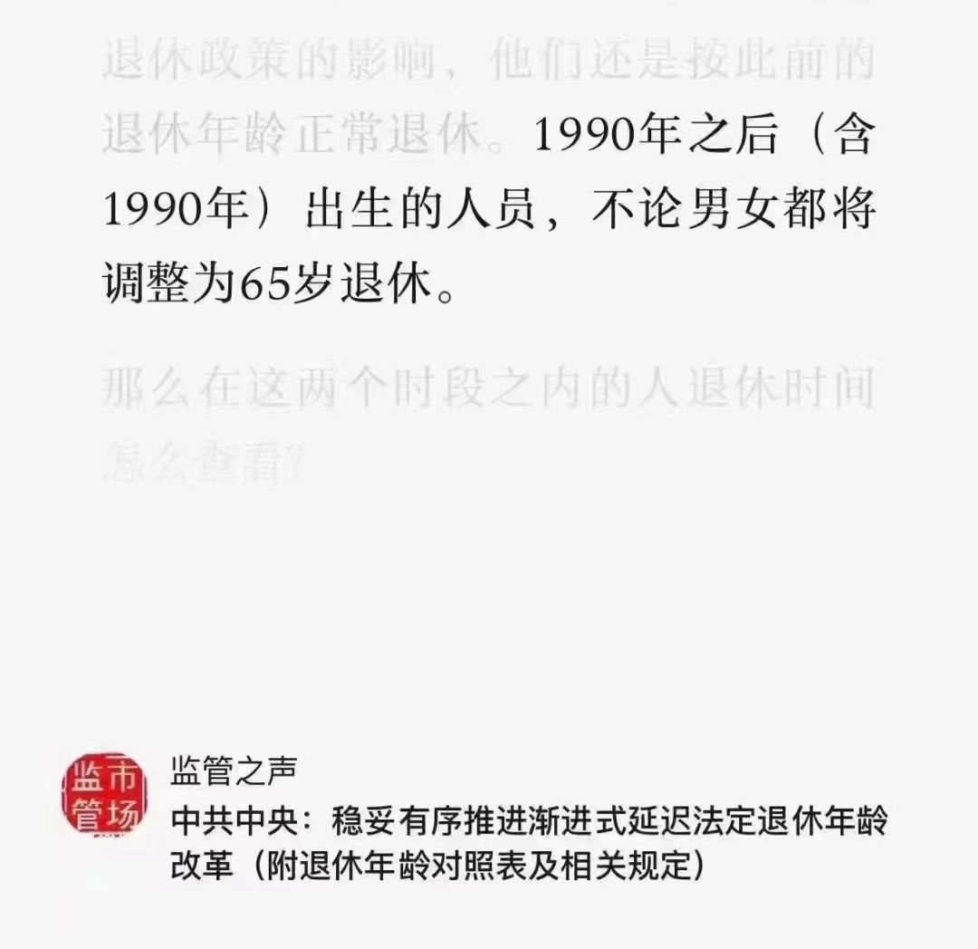 图片中提到,1990年之后出生的人员,无论男女,都将调整为65岁退休。这一消息是否准确?延迟退休政策真的已经到来了吗?