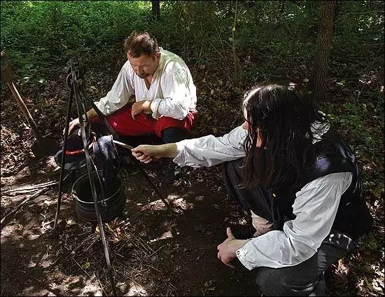 电影《美丽新世界》截图:詹姆斯镇的饥民把靴子煮了吃