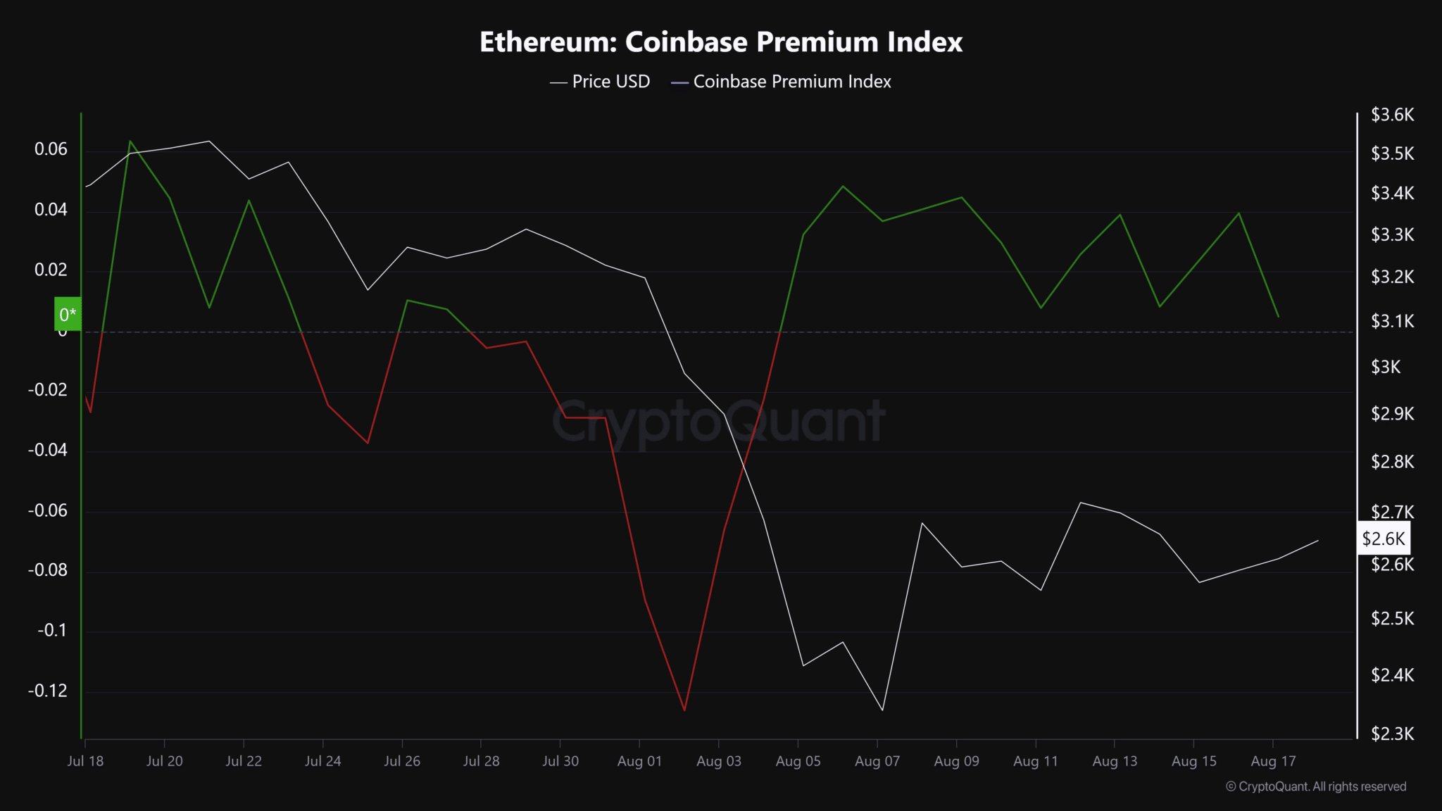 历史上,美国投资者的积极需求与以太坊的复苏或上涨相吻合,持续的正 Coinbase 溢价指数可能推动 ETH 进一步反弹。